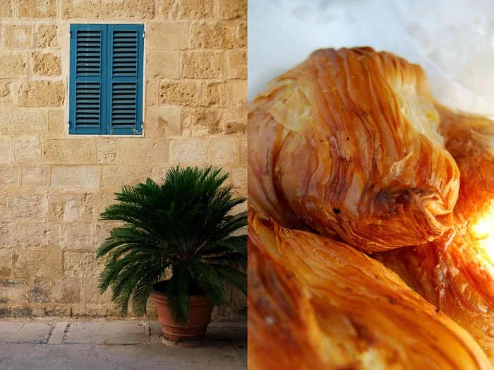 When we go to Mdina, we always stop at a little bar, Crystal Palace, which is at the entrance of a town right opposite Mdina, in Rabat. It's famous for its Qassatat and Pastizzi, I mentioned the two delicacies a couple days ago when I wrote about our grilled amberjack from Marsaxlokk. If you ever visit Mdina, you should enter this simple looking bar and enjoy a couple of their buttery snacks!